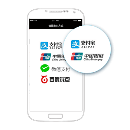 顶顶收银台,为iOS/Android原生/H5 App提供支付解决方案:支持微信支付、支付宝支付、银联手机支付、百度钱包等。